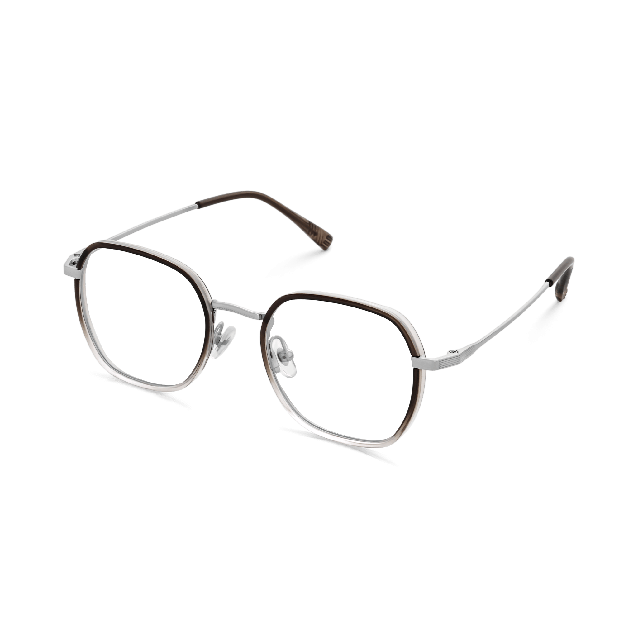 Textured-Temple Two-Tone Rounded Octagonal Optical Eyeglasses