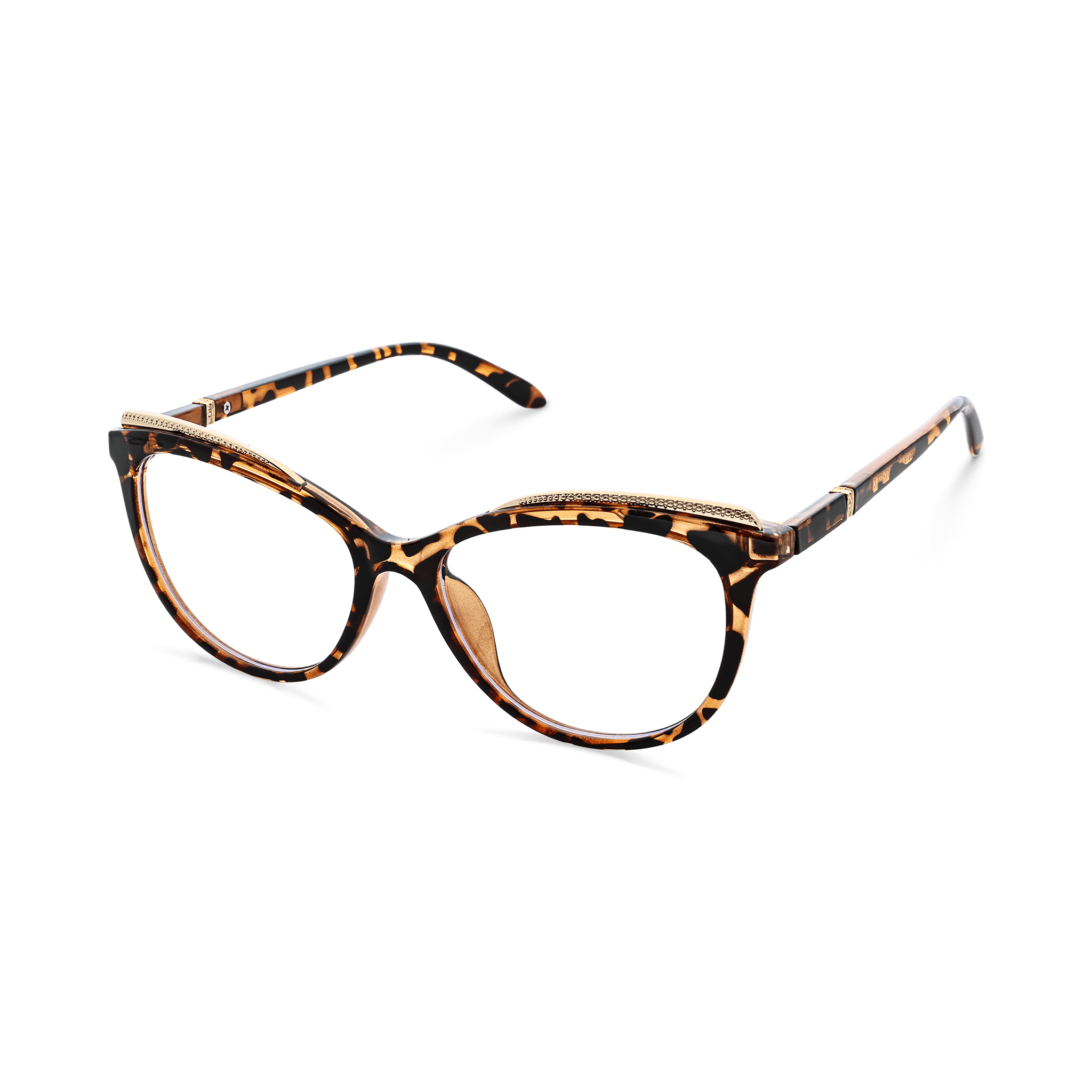 Spring-hinged Metallic-Accented Tortoiseshell Cat-eye Eyeglasses