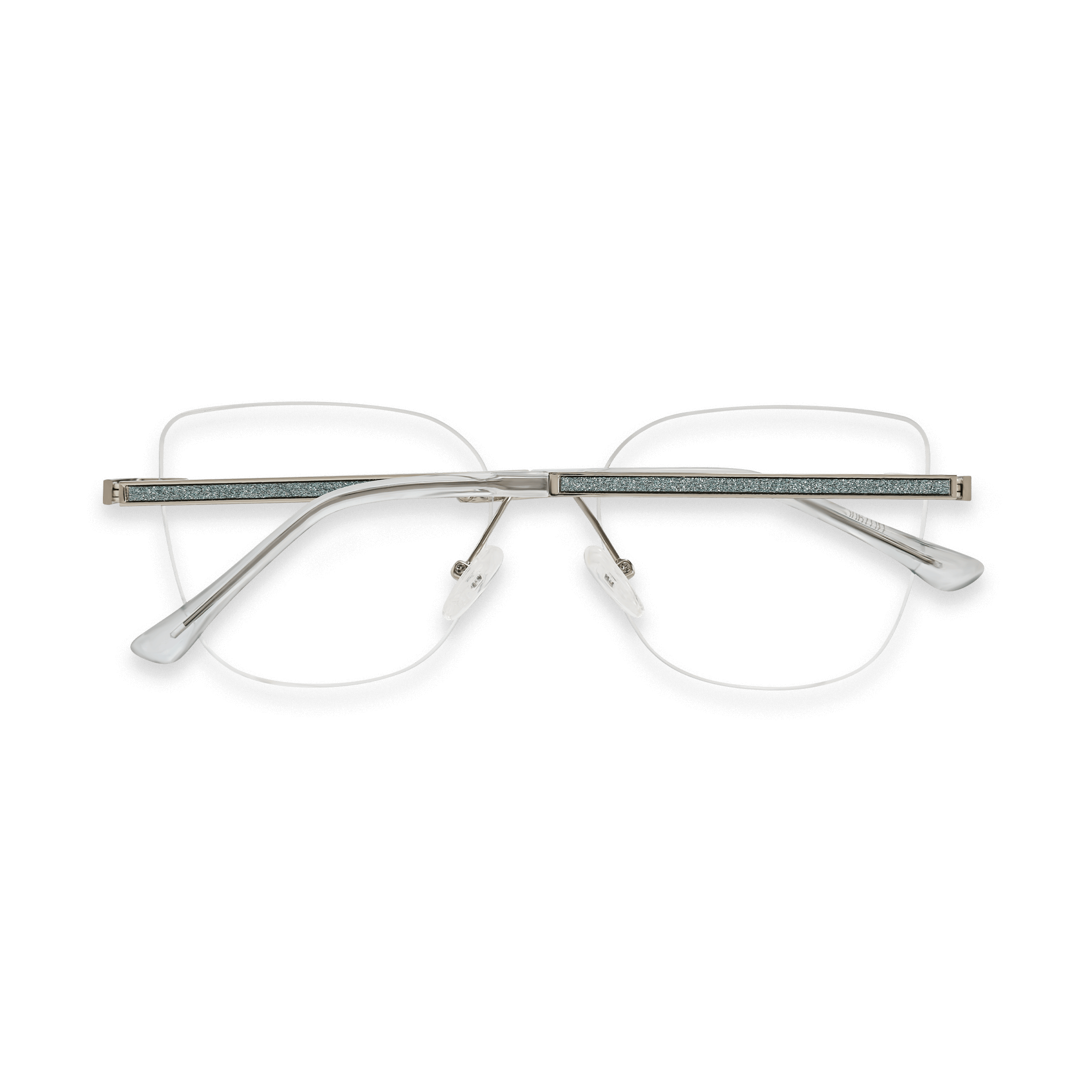Semi-rimless Round-to-Cat-eye Hybrid Eyeglasses