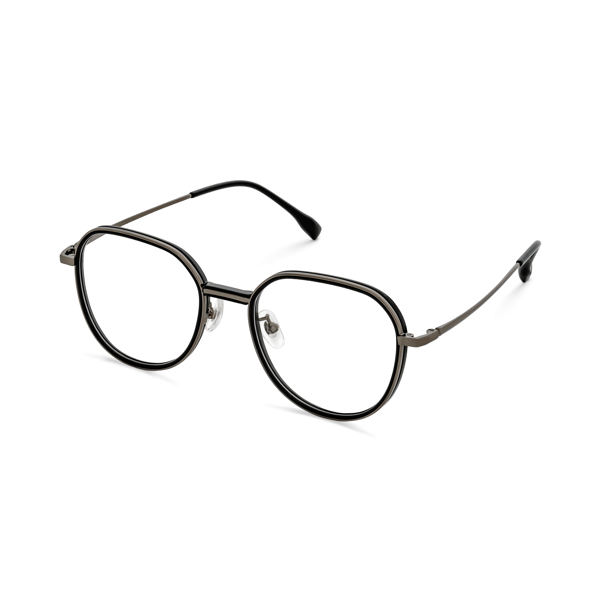These optical eyeglasses are a harmonious blend of style and practicality. The two – tone combination of black and gunmetal gray, along with the rounded geometric hexagonal design, offers a modern and retro – inspired look. Crafted from high – quality materials, they are suitable for vision correction and can also serve as a fashion statement.