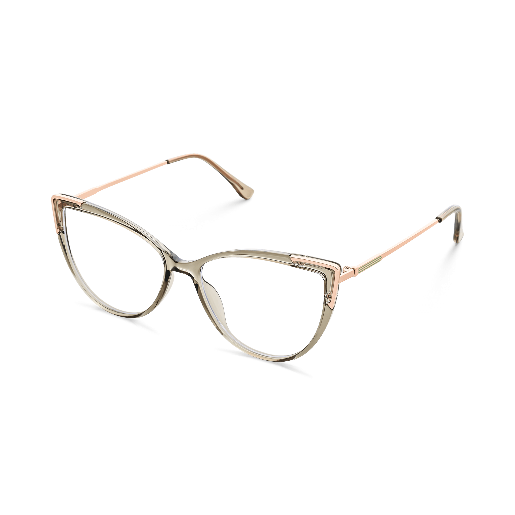 These eyeglasses are a remarkable blend of style and functionality. The oversized rectangular frames with rounded edges offer a broad field of vision. The gradient light brown finish on the frame and temples, transitioning from a warm nude – beige to clear, gives them a modern and trendy look, while the triangular cutout on the bridge adds a unique touch.
