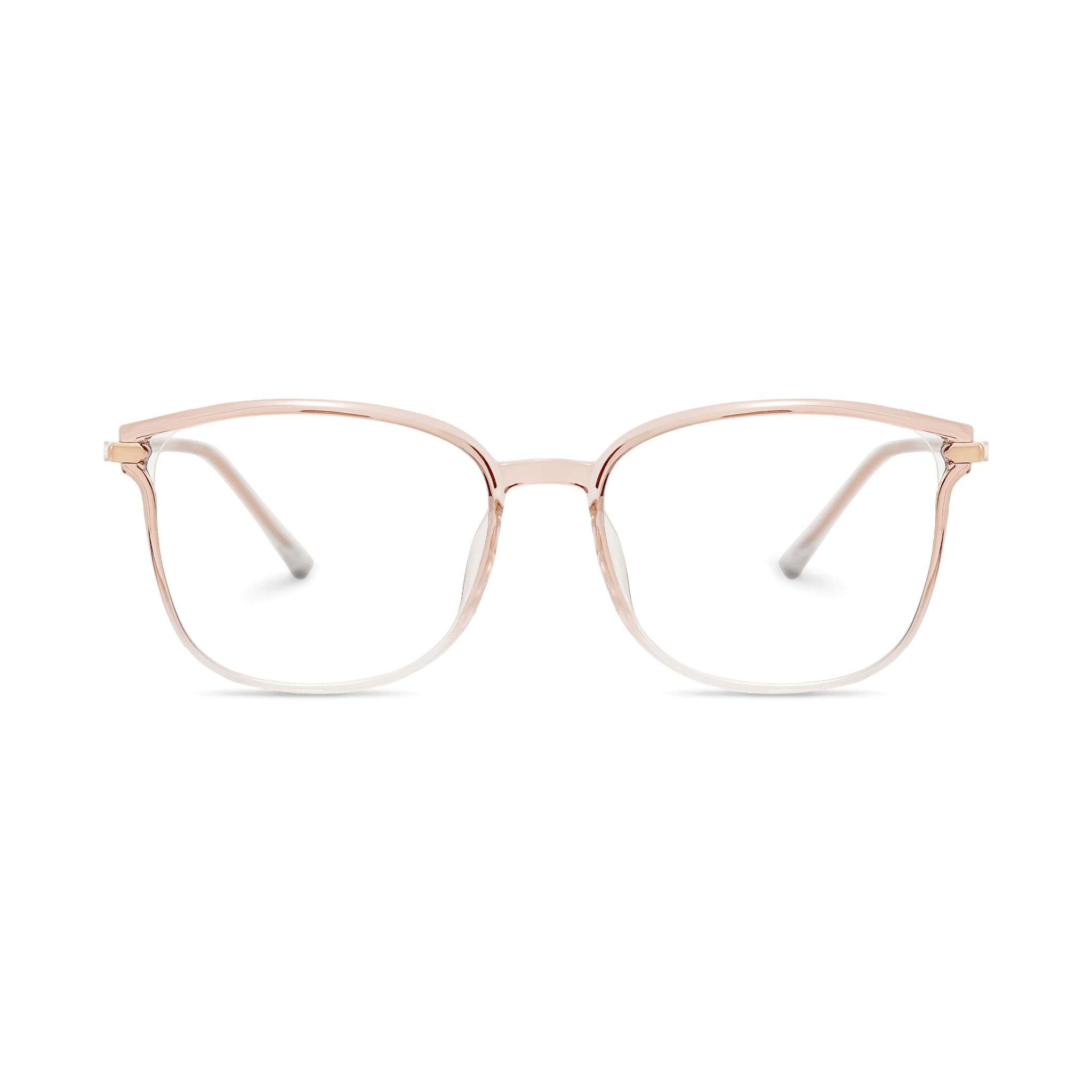 These eyeglasses are a harmonious blend of fashion and practicality. The frame front showcases a beautiful gradient transition from a rose – gold hue at the top to clear/white at the bottom, creating a frosted effect. The rounded cat – eye shape with a square/rounded – square lens adds a touch of elegance, making them suitable for various daily activities.