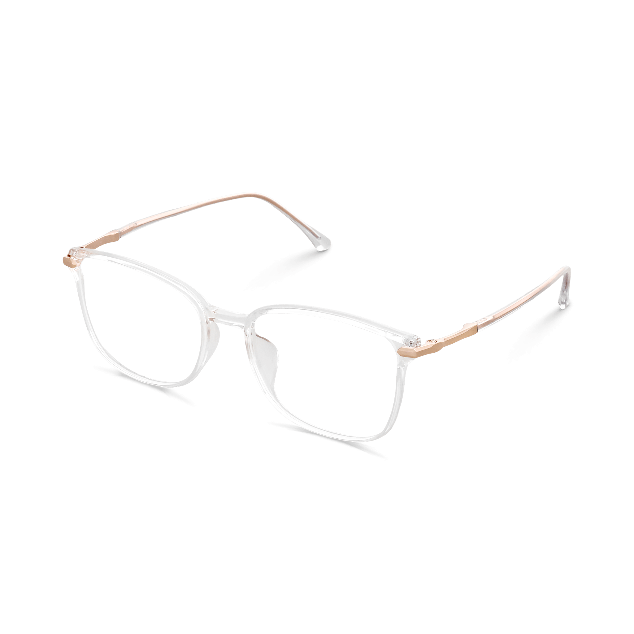 These optical eyeglasses are a brilliant fusion of style and practicality. The frame, crafted from transparent plastic, is lightweight and flexible, making them suitable for long – term wear. The addition of rose gold metallic accents on the temples and frame corners adds a touch of elegance, making them a fashionable choice for daily use.