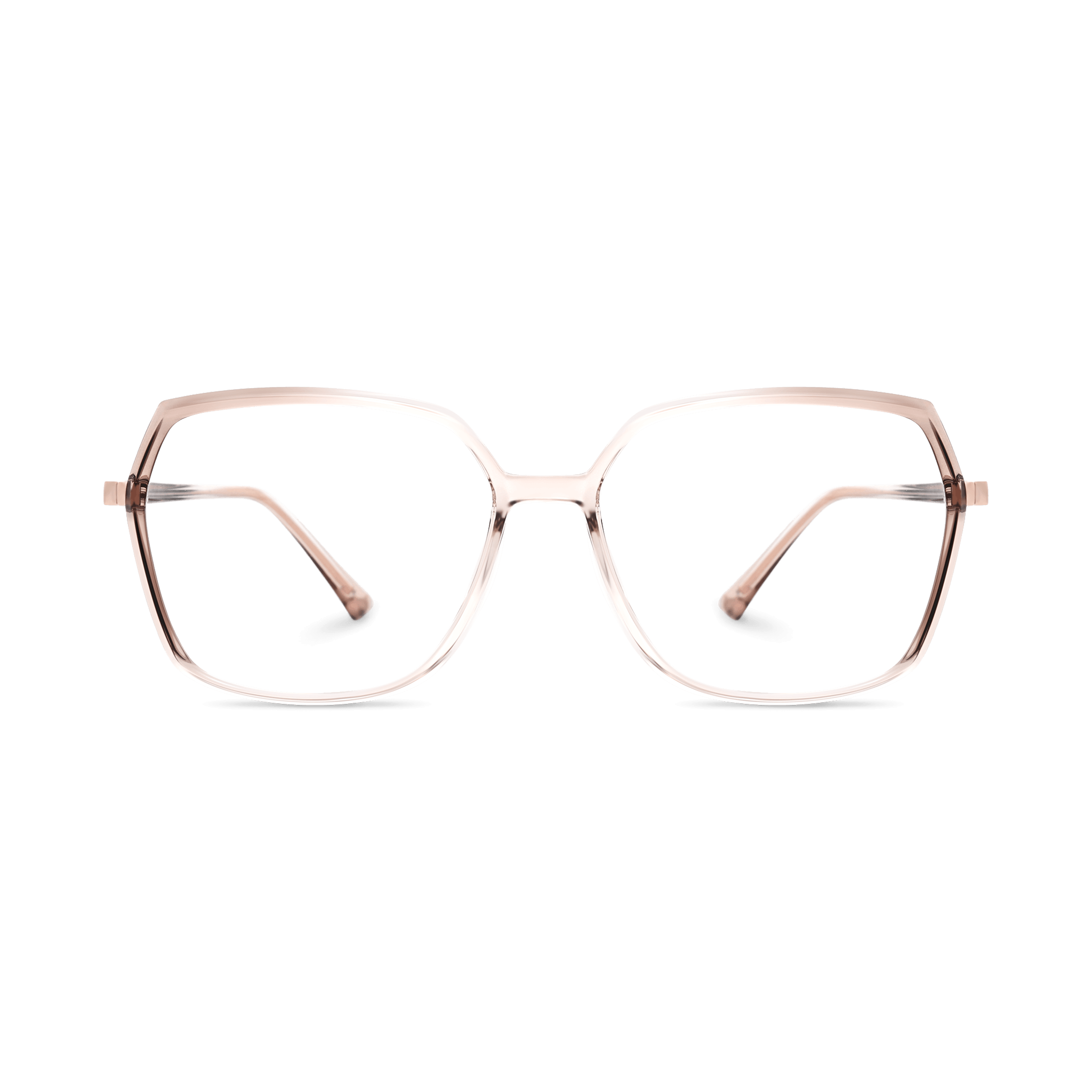 These eyeglasses are a harmonious blend of fashion and practicality. The front frame is crafted from a semi – transparent acetate – like material with a gradient finish that fades from a soft pinkish – brown to clear. The metallic temples add a touch of elegance, and the overall geometric design is both modern and stylish, suitable for various occasions.