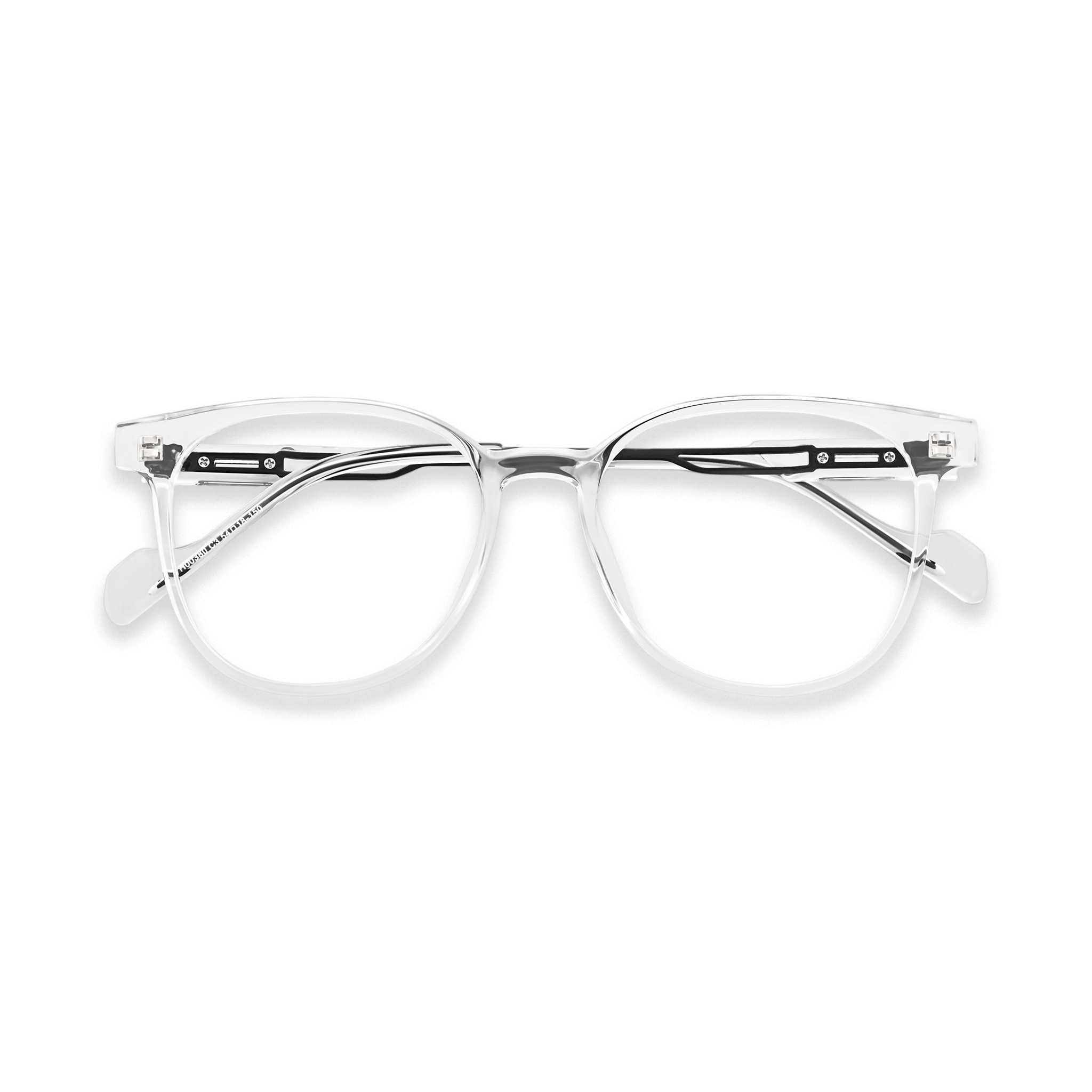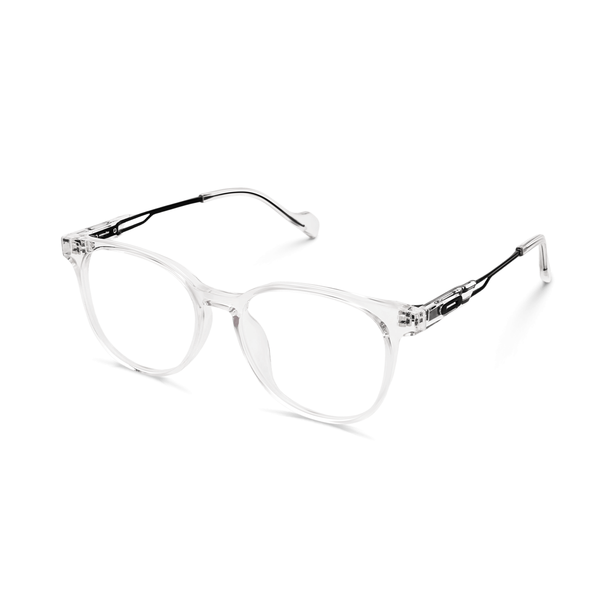 These optical eyeglasses are a perfect blend of style and functionality. The frame is crafted from high – grade transparent plastic, which is lightweight and durable. With metallic accents and black inner temple components, they create a minimalist yet sophisticated look that can be used for vision correction or as a fashion statement.