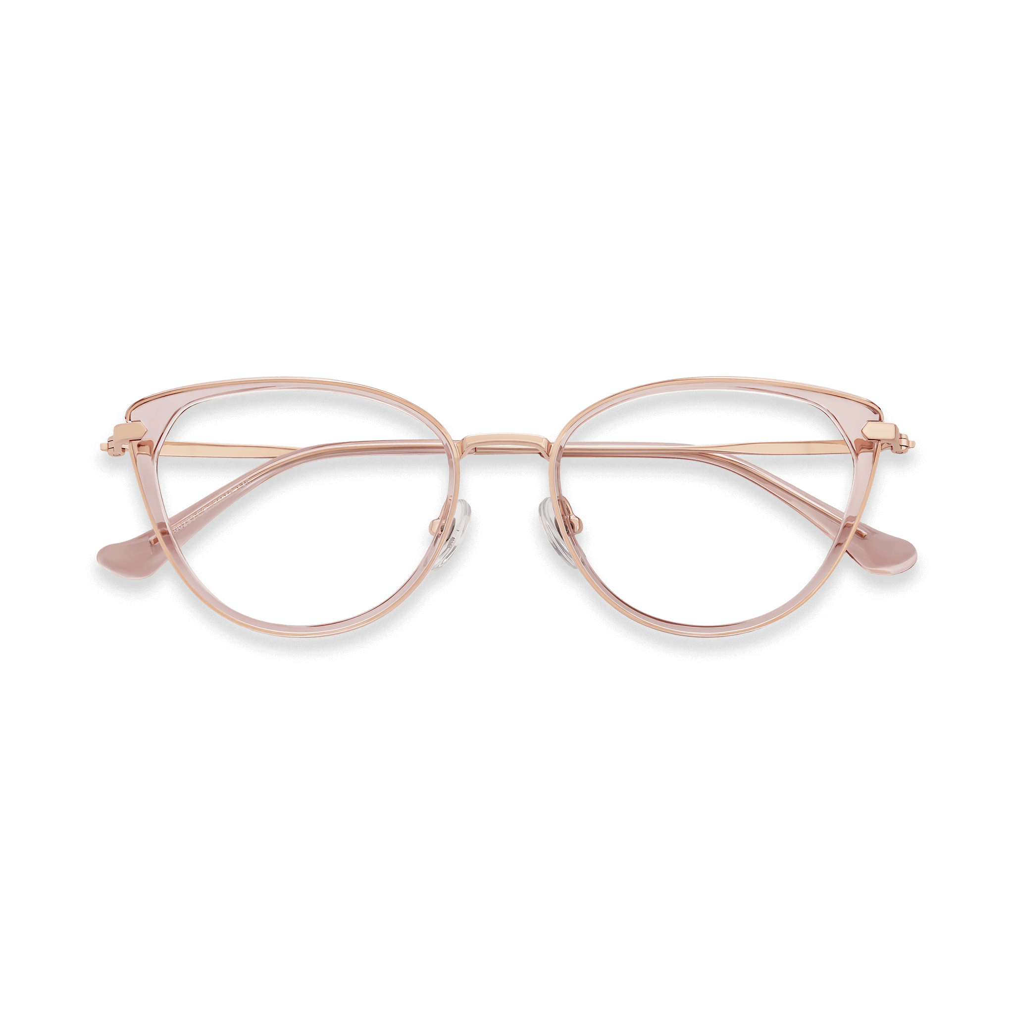 These optical eyeglasses offer a harmonious blend of style and functionality. The cat-eye silhouette with a modern twist, thanks to rounded bottom edges, exudes a feminine and elegant charm. The dual – material frame, combining semi – transparent pink plastic/acetate with rose gold – toned metal, not only looks stylish but also ensures durability and comfort.