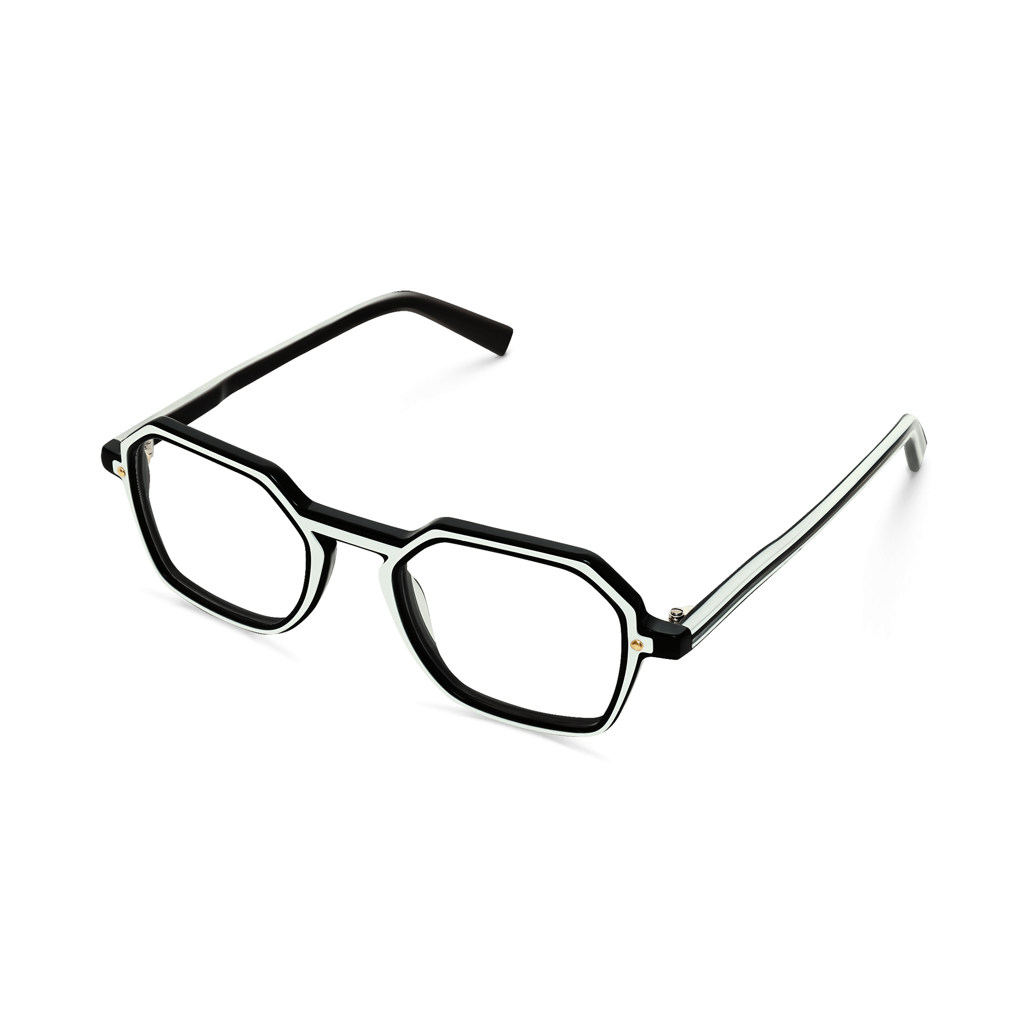These eyeglasses seamlessly blend functionality and style. With a structured frame, they are suitable for prescription or reading use. The combination of black and white/silver creates a bold two – tone geometric pattern, and the gold – toned accents add a touch of refinement.
