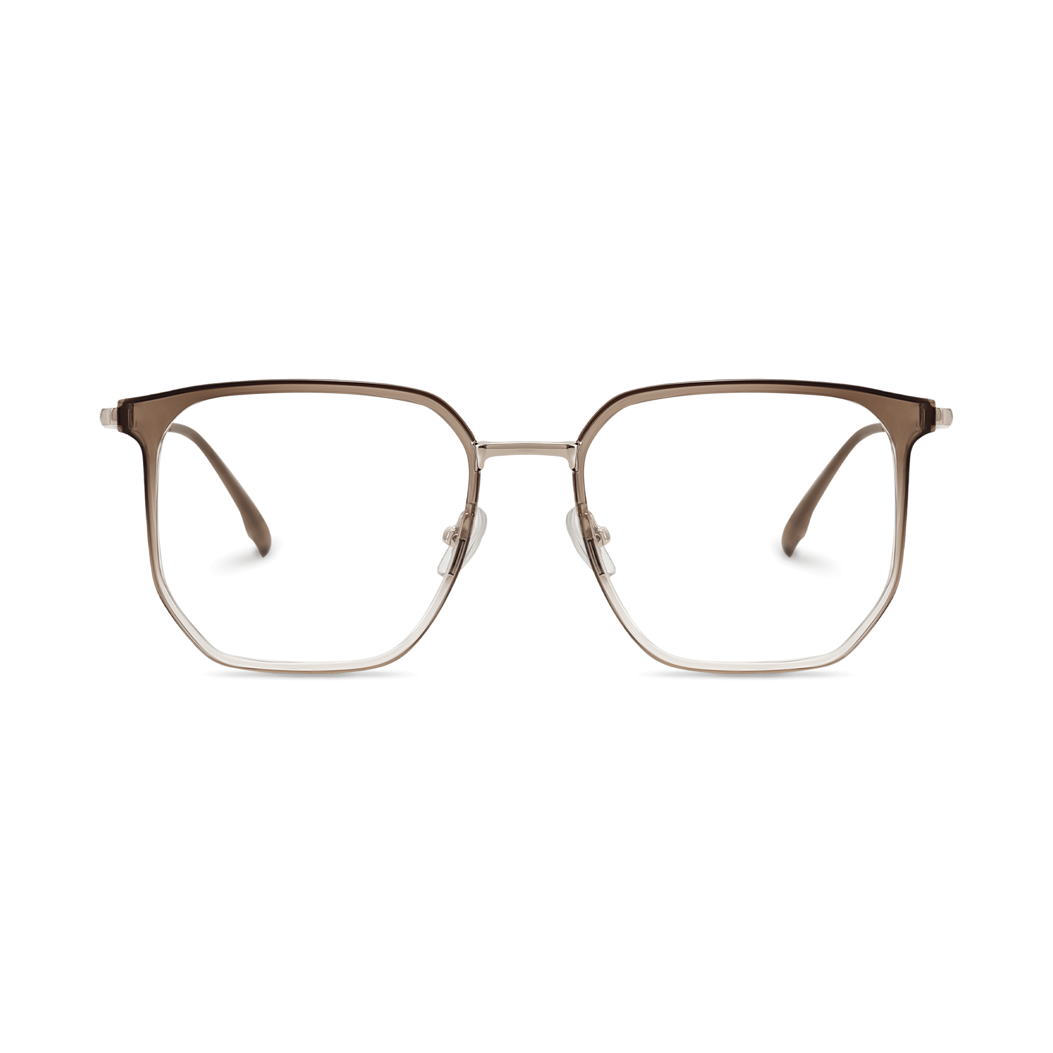 These gradient square modern eyeglasses are a fantastic blend of style and practicality. The frame features a gradient front in brown tones, transitioning from dark to light, paired with sleek metallic arms and soft temple tips. They can be used for vision correction with prescription lenses or simply as a trendy fashion accessory.