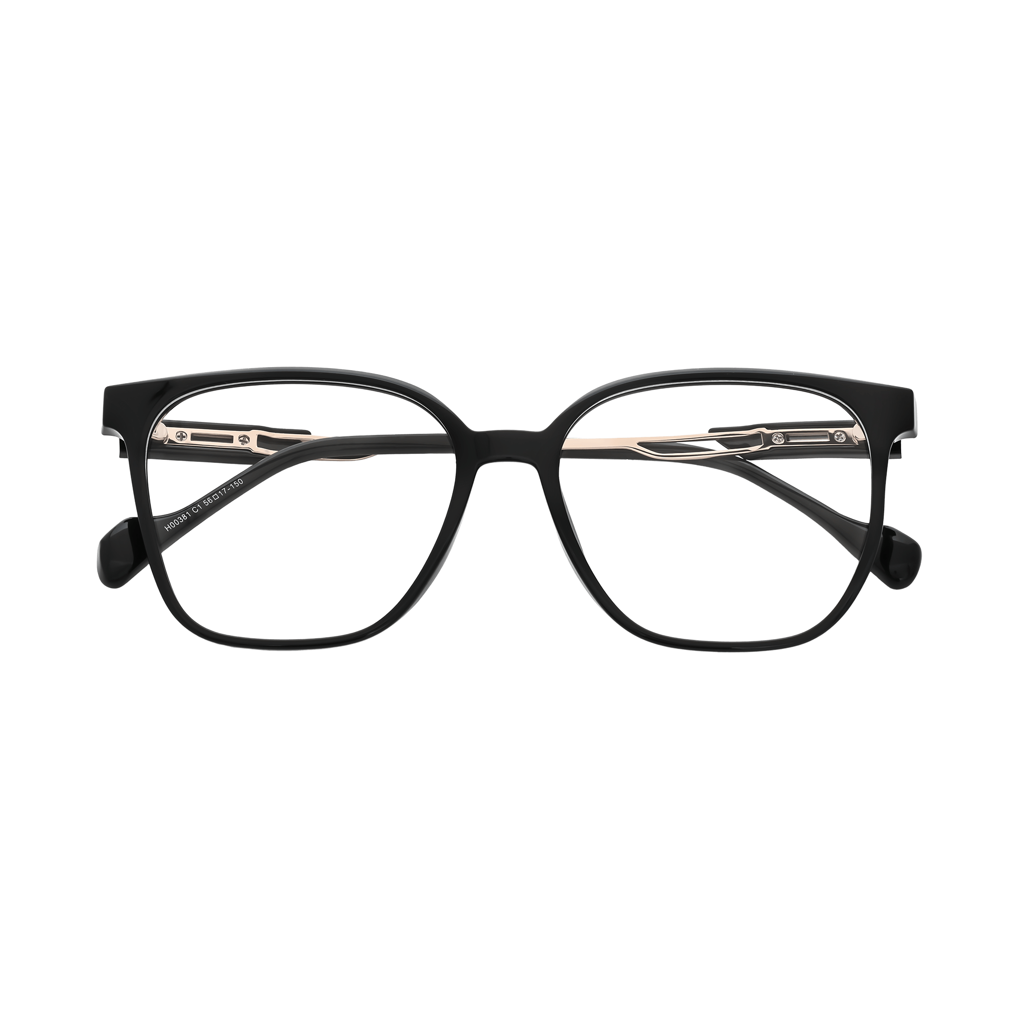 These optical eyeglasses offer a perfect blend of practicality and style. With a rounded – edge square frame crafted from acetate or a similar polymer, they feature a sleek black finish. The temples combine black plastic with light gold metal accents, adding a touch of sophistication to the overall design.