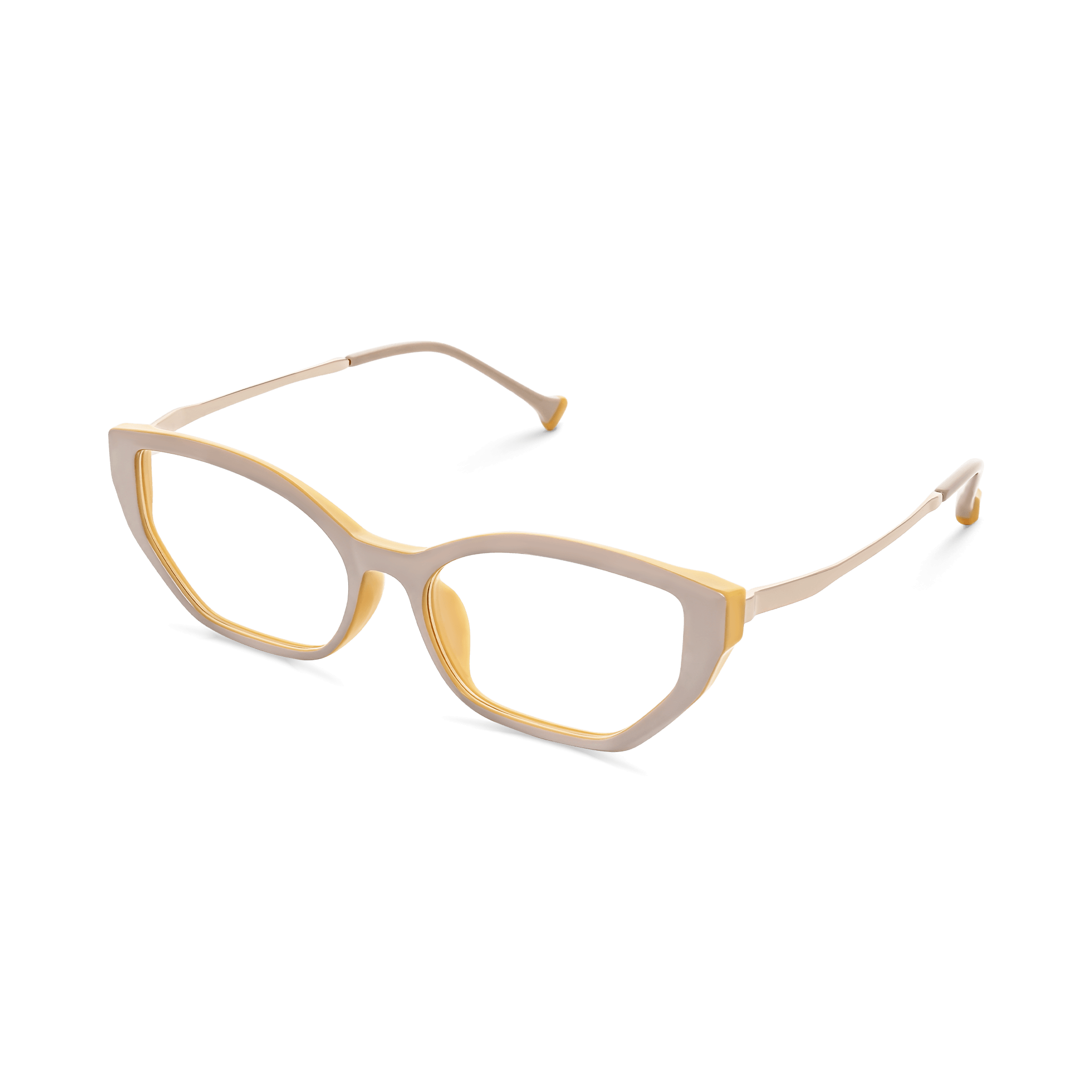 - Lightweight construction with gold metal temples for daily wear without strain.