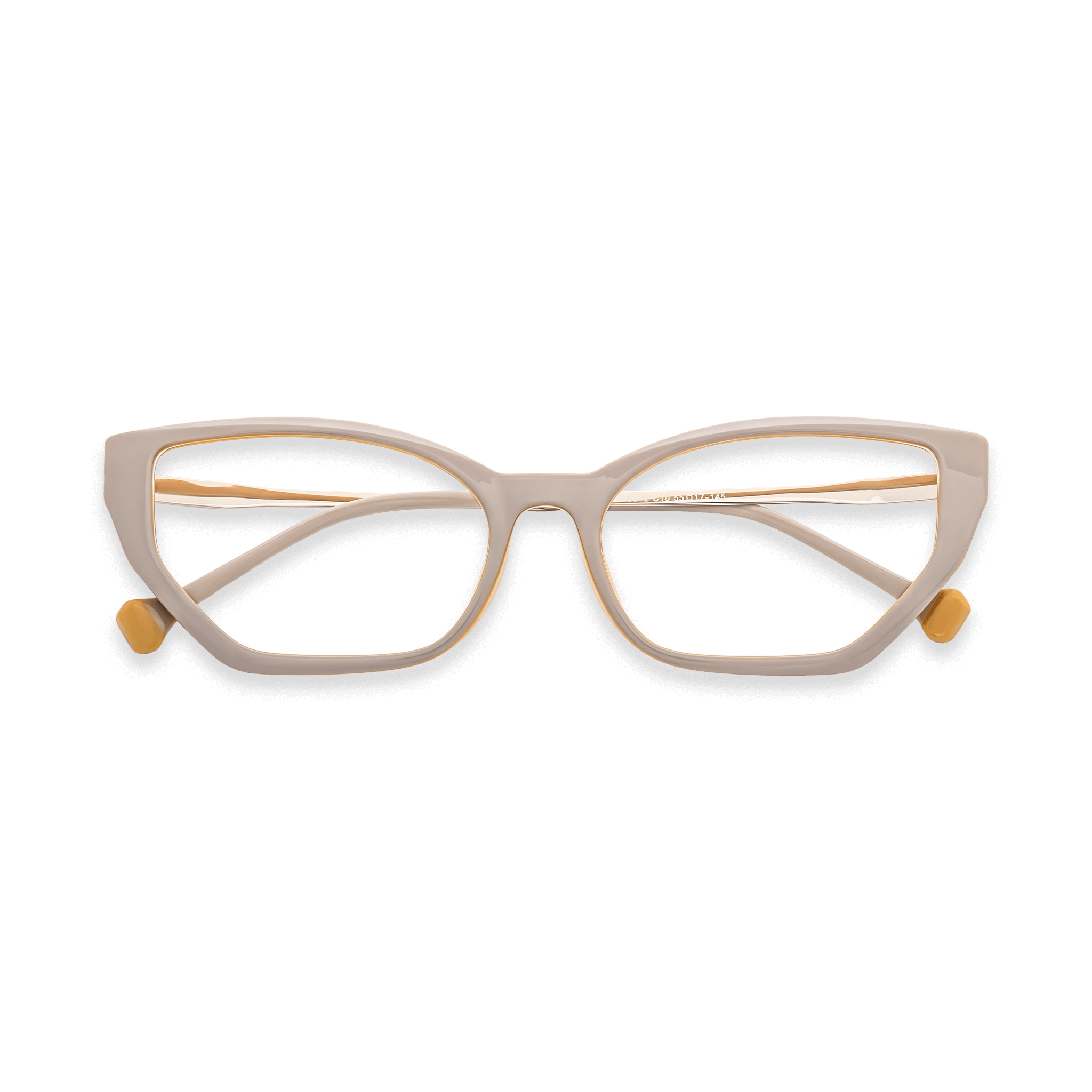These optical eyeglasses are a stylish and functional choice. The cat-eye design features a light gray outer frame with a smooth, matte finish, paired with a contrasting yellow/gold inner trim. The metallic temples add a modern touch, and the overall construction suggests high – quality craftsmanship.