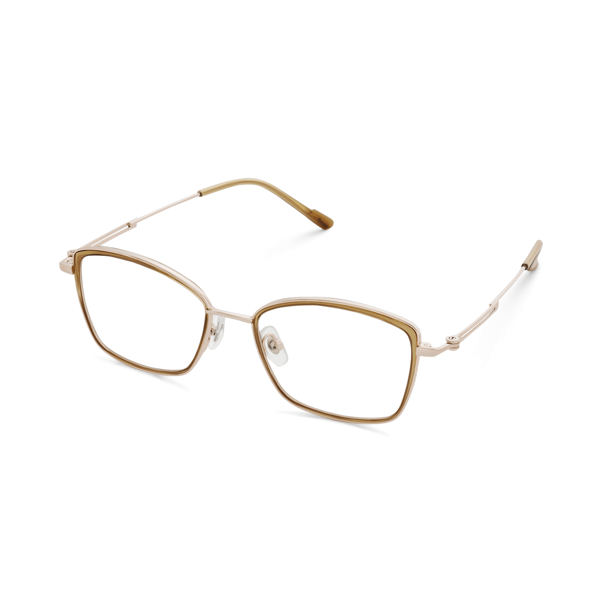 These cat-eye optical eyeglasses are a harmonious blend of style and practicality. The frame is crafted from a semi-transparent, lightweight plastic, offering durability and a modern look. The temples feature a metallic core, adding a touch of sophistication, and are designed for both comfort and a secure fit.