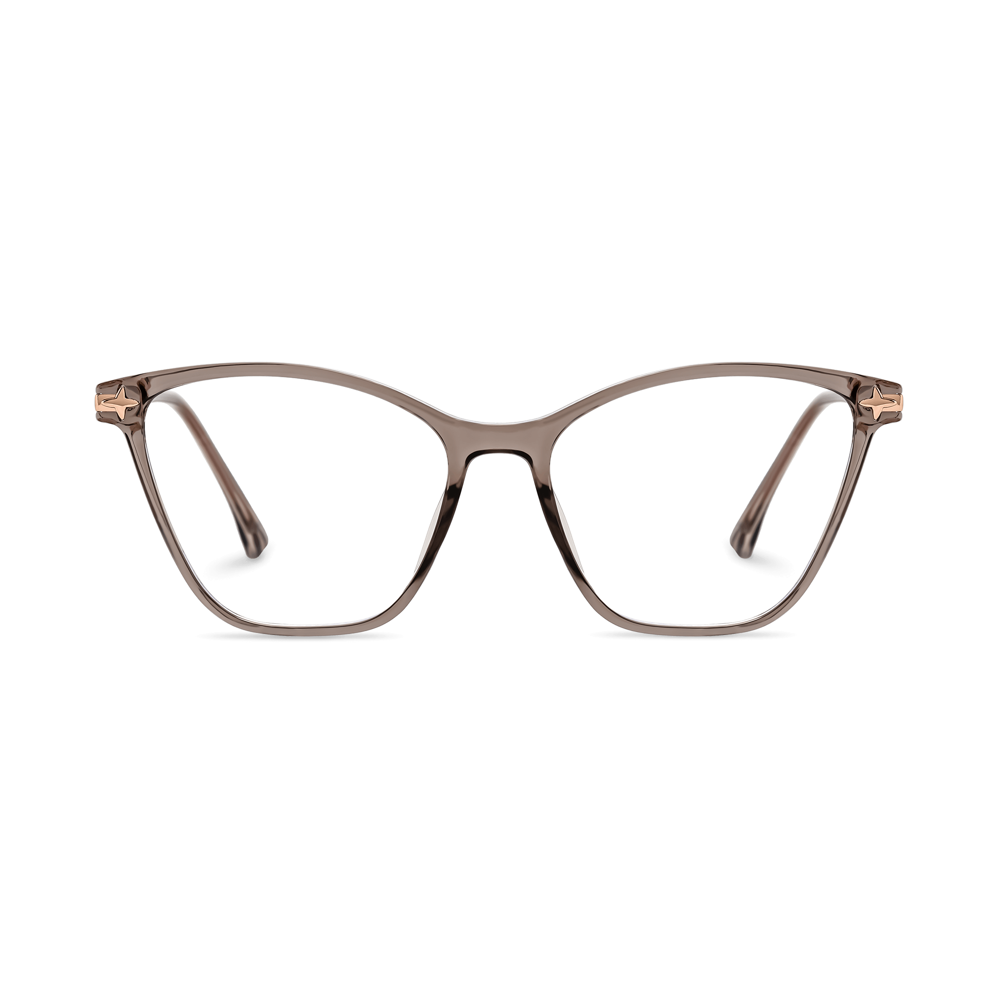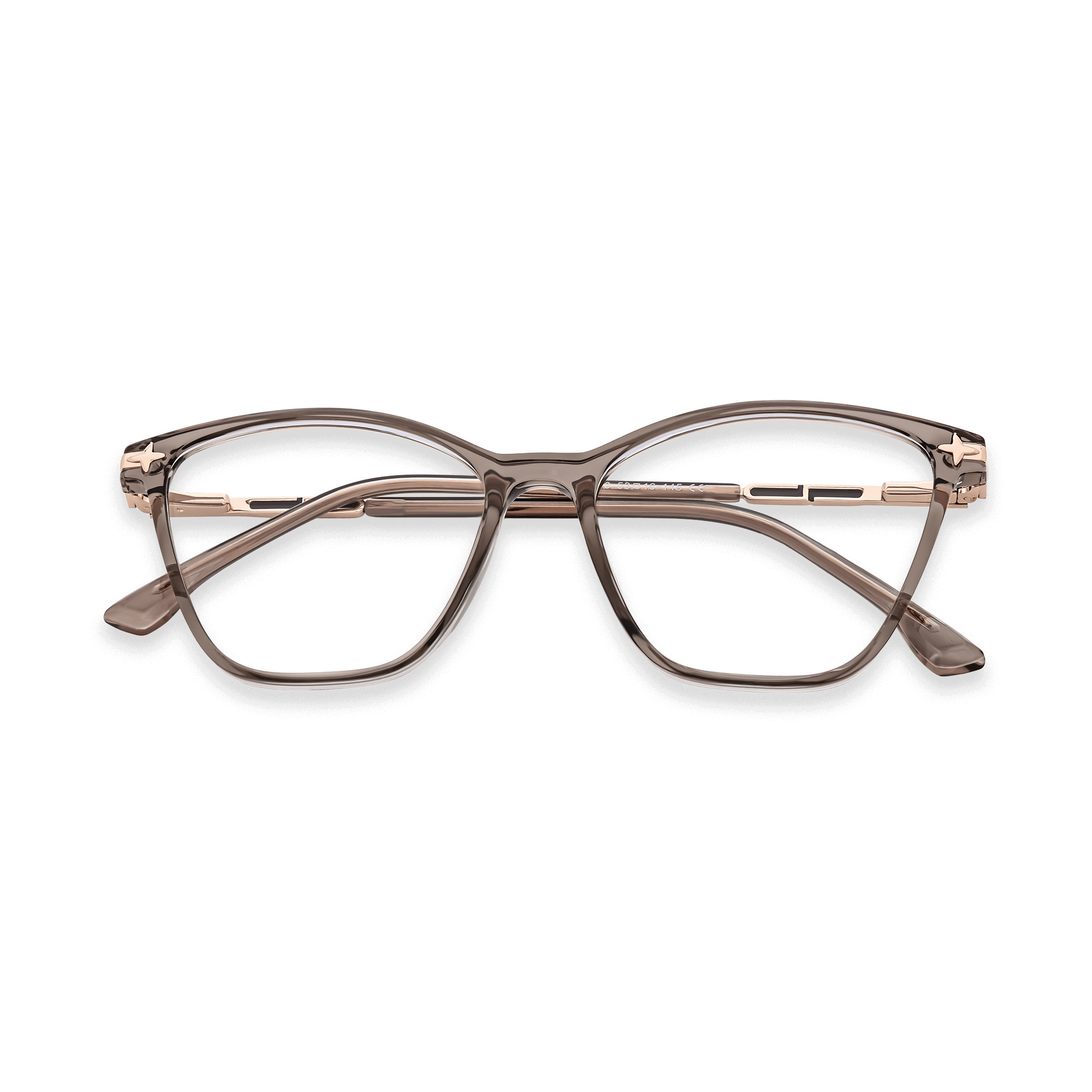 These rectangular – cutout dual – material cat – eye optical eyeglasses are a perfect blend of style and functionality. The primary frame is made of translucent plastic with a smoky gray – to – brown hue, while the accents are crafted from rose gold – toned metal. They are suitable for vision correction and also serve as a fashionable accessory.