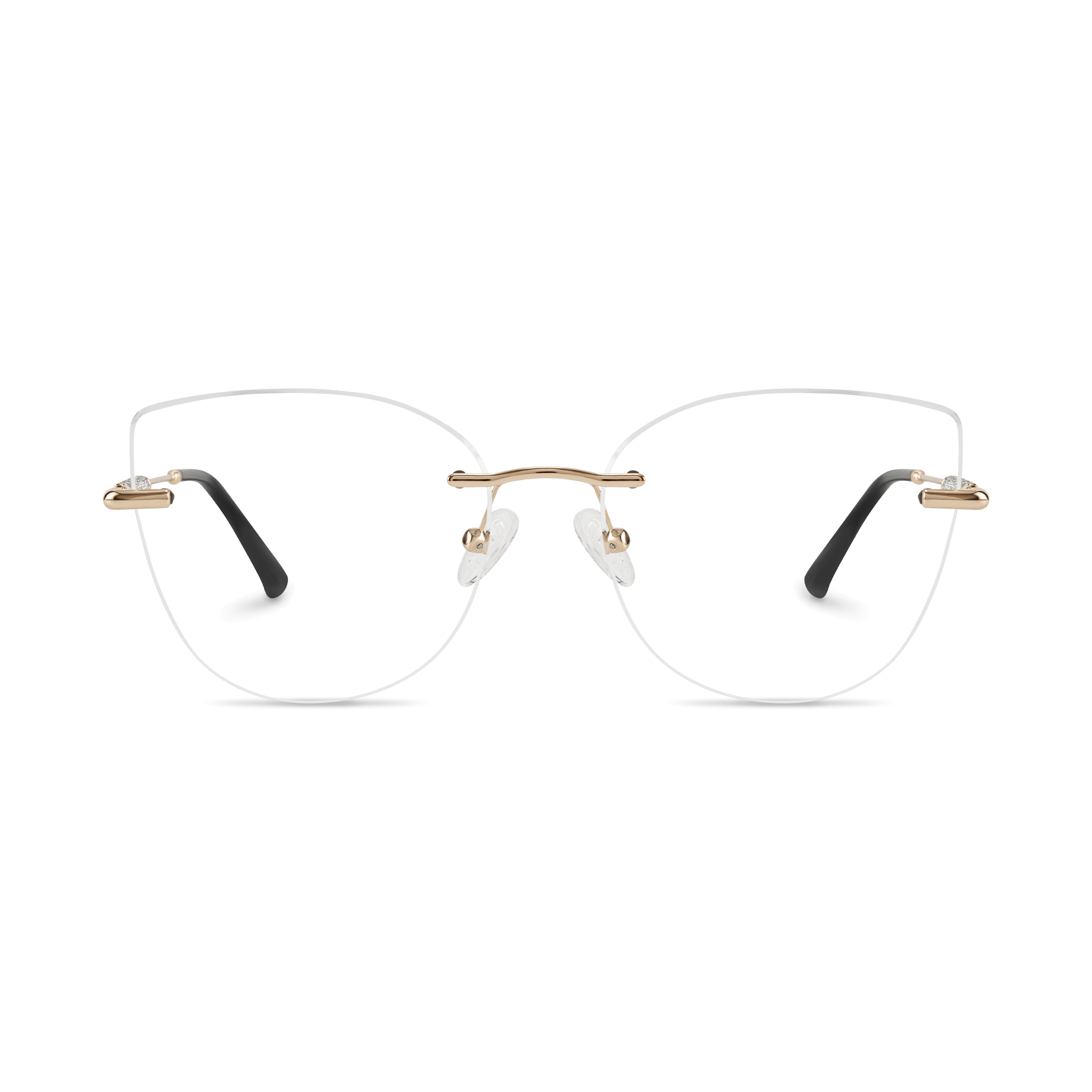 These eyeglasses are a stylish and functional choice. The semi – rimless cat – eye design, with clear lenses and a gold – tone metal frame, is both elegant and fashionable. The glittery temple detailing adds a touch of sparkle, making them stand out whether used for vision correction or as a trendy accessory.