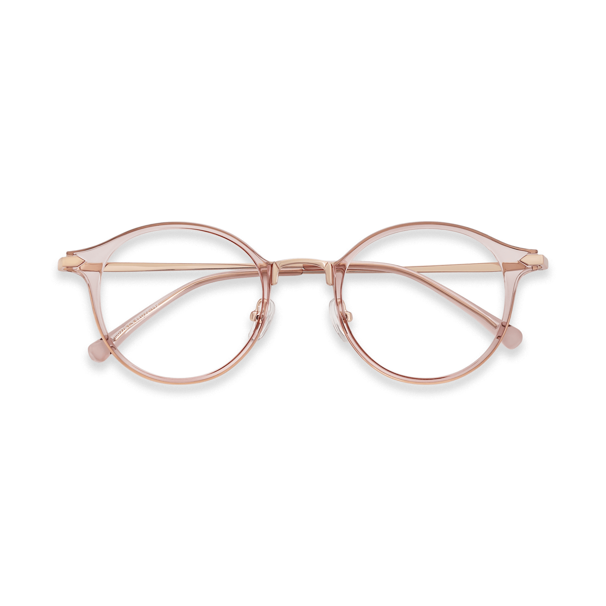 These eyeglasses are a stylish blend of vintage and modern design, featuring a cat – eye inspired shape. The soft, translucent pink plastic frames paired with a rose gold – tinted metal finish give them a trendy and feminine look. They are not only suitable for vision correction but also serve as a fashionable accessory for daily wear.