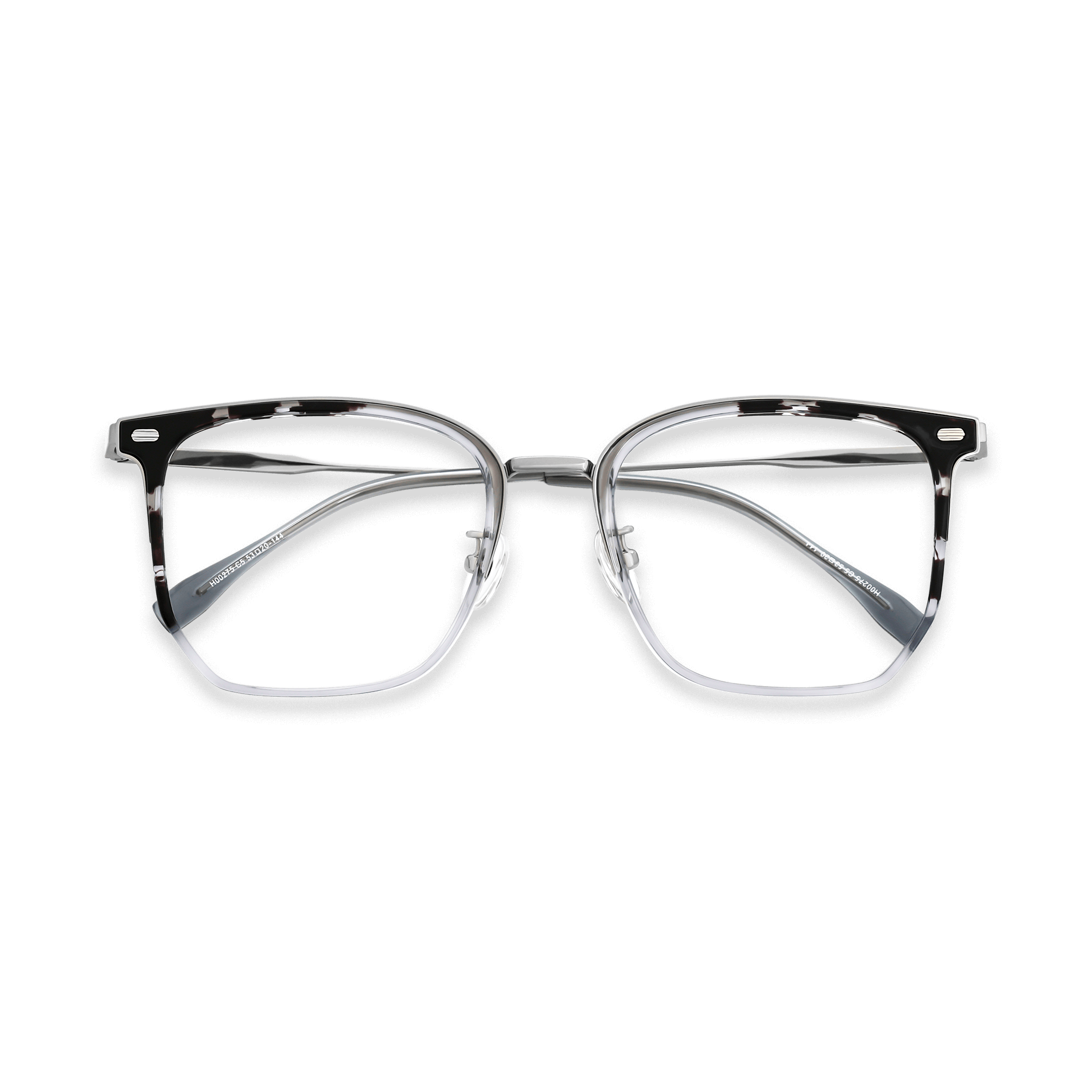 These optical eyeglasses are a harmonious blend of style and practicality. The frame front showcases a captivating tortoiseshell – like pattern with a black base and white/gray marbling on acetate material, while the bridge and temple arms are made of metal. With their square – shaped lenses having rounded edges, they offer a trendy yet classic look suitable for various occasions.