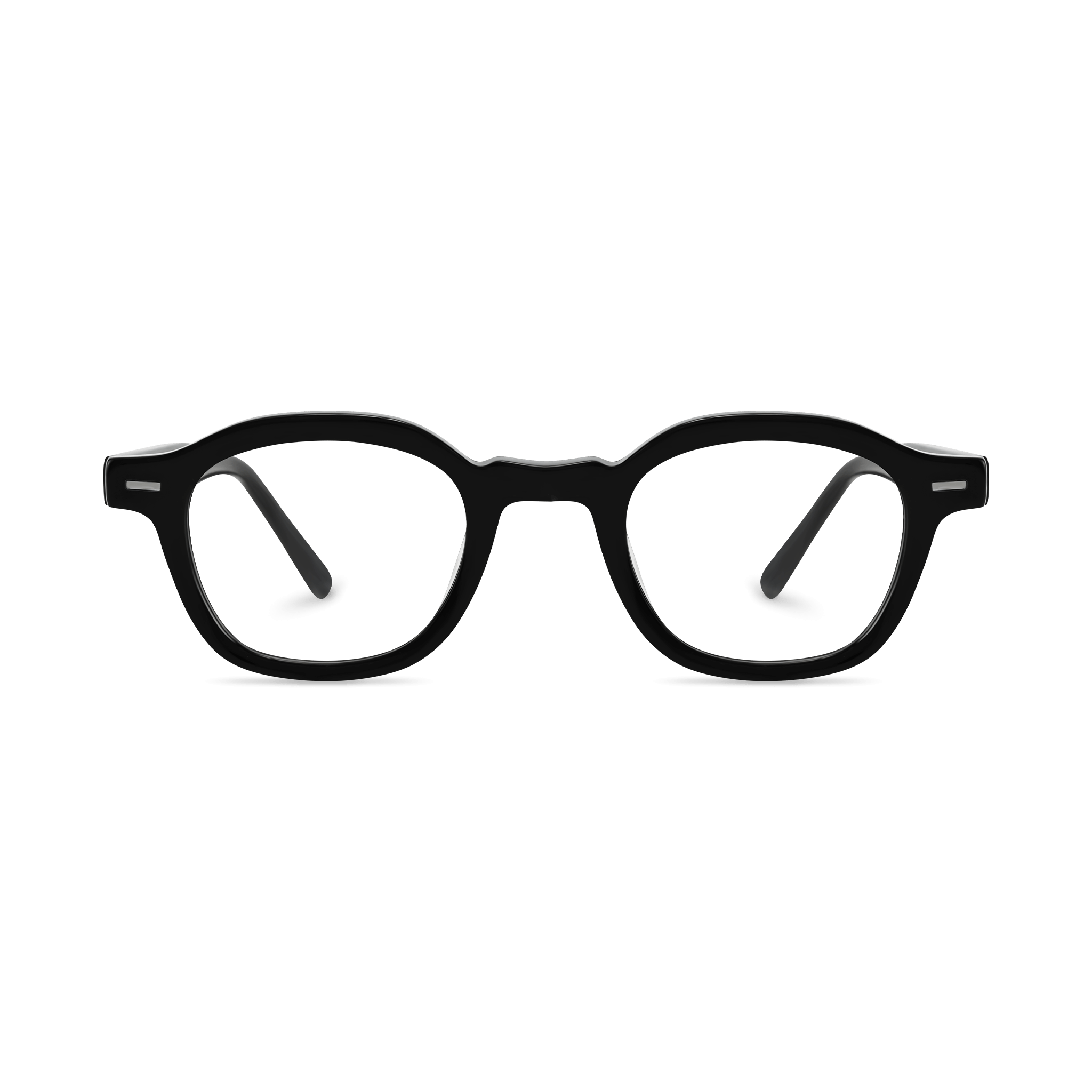 These rectangular-detailed retro-modern eyeglasses are a harmonious blend of classic and contemporary design. The frame is crafted from a smooth, lightweight plastic or acetate material, with a solid black color that exudes a high – end aesthetic. The small white/silver rectangular accents on the temples add a stylish contrast, making these eyeglasses both functional and fashionable.