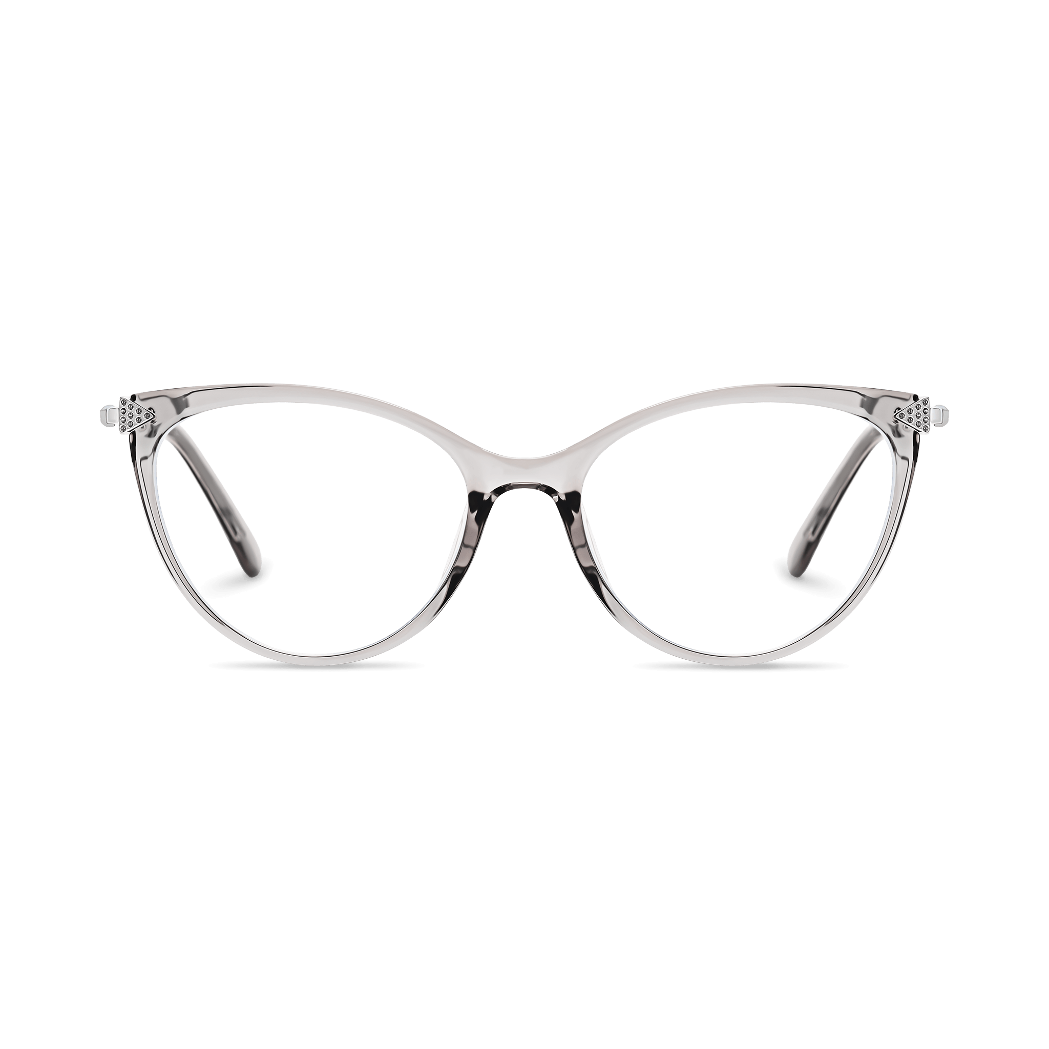 These cat – eye style eyeglasses are a perfect blend of fashion and functionality. The translucent gray plastic frame paired with metallic temples creates a modern yet classic look. The decorative accents on the upper corners of the lens rims add a touch of luxury, making them suitable for both vision correction and as a stylish accessory.