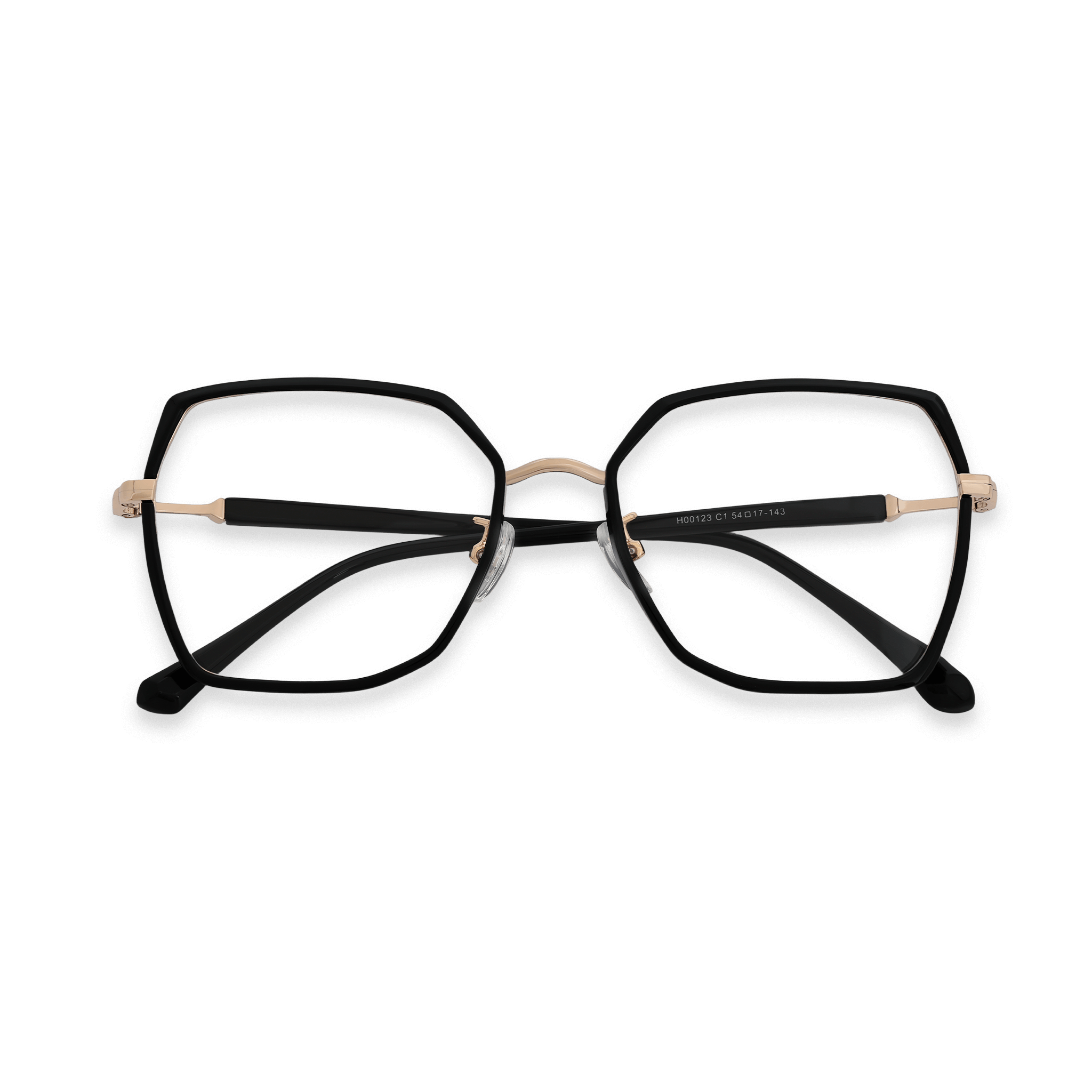 These optical eyeglasses are a perfect blend of fashion and function. With a contemporary hexagonal – octagonal hybrid shape, they make a bold style statement. The dominant black plastic outer frame is paired with eye – catching rose gold metallic accents, creating a striking two – tone contrast.