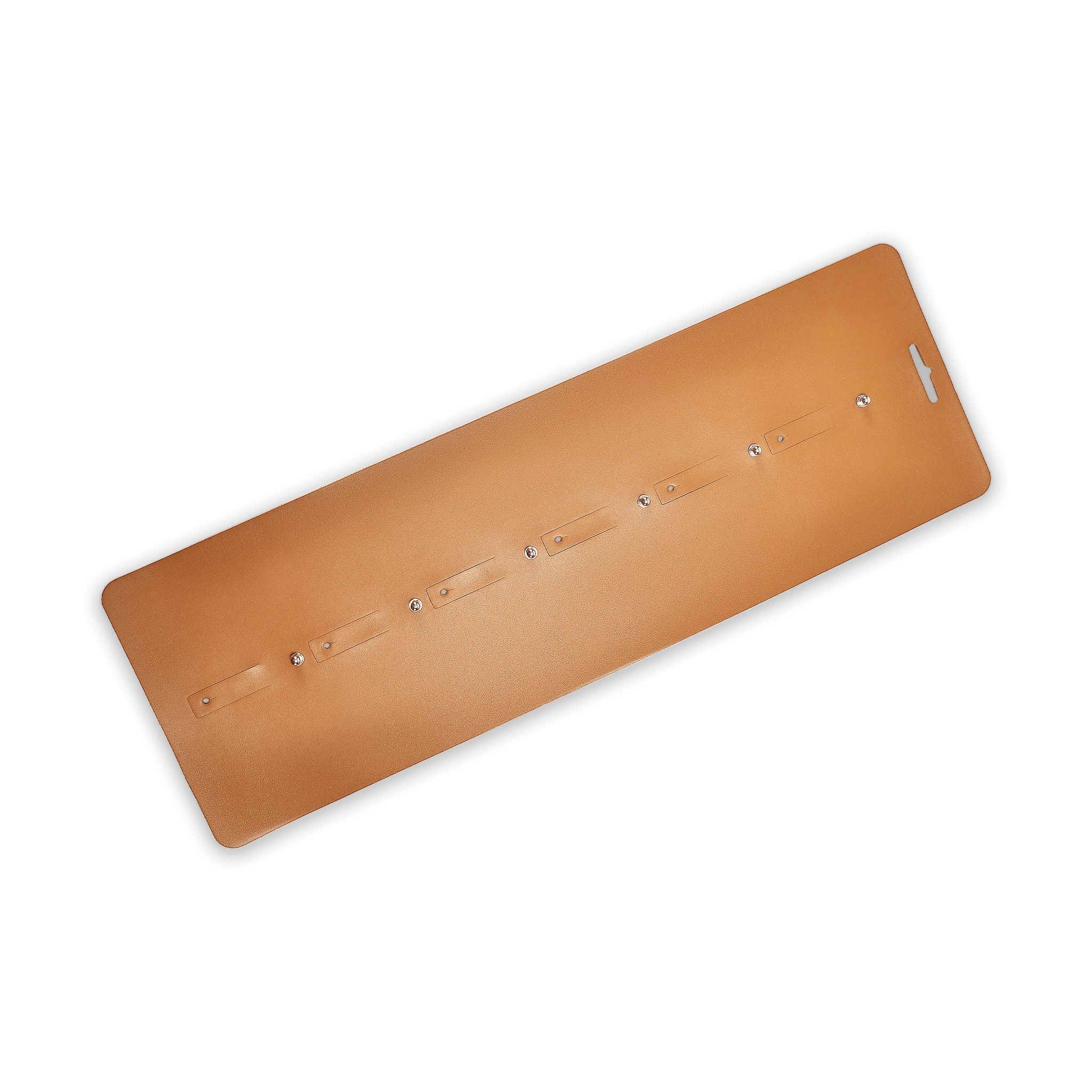 This minimalist adjustable wall-mounted eyeglass storage rack is an ideal solution for organizing your eyewear. Crafted with a tan-colored, smooth-textured material that resembles leather, it not only looks stylish but also offers durability. With adjustable holders and a wall-mounting option, it can efficiently hold multiple pairs of eyeglasses and sunglasses in an organized manner, suitable for both home and retail settings.