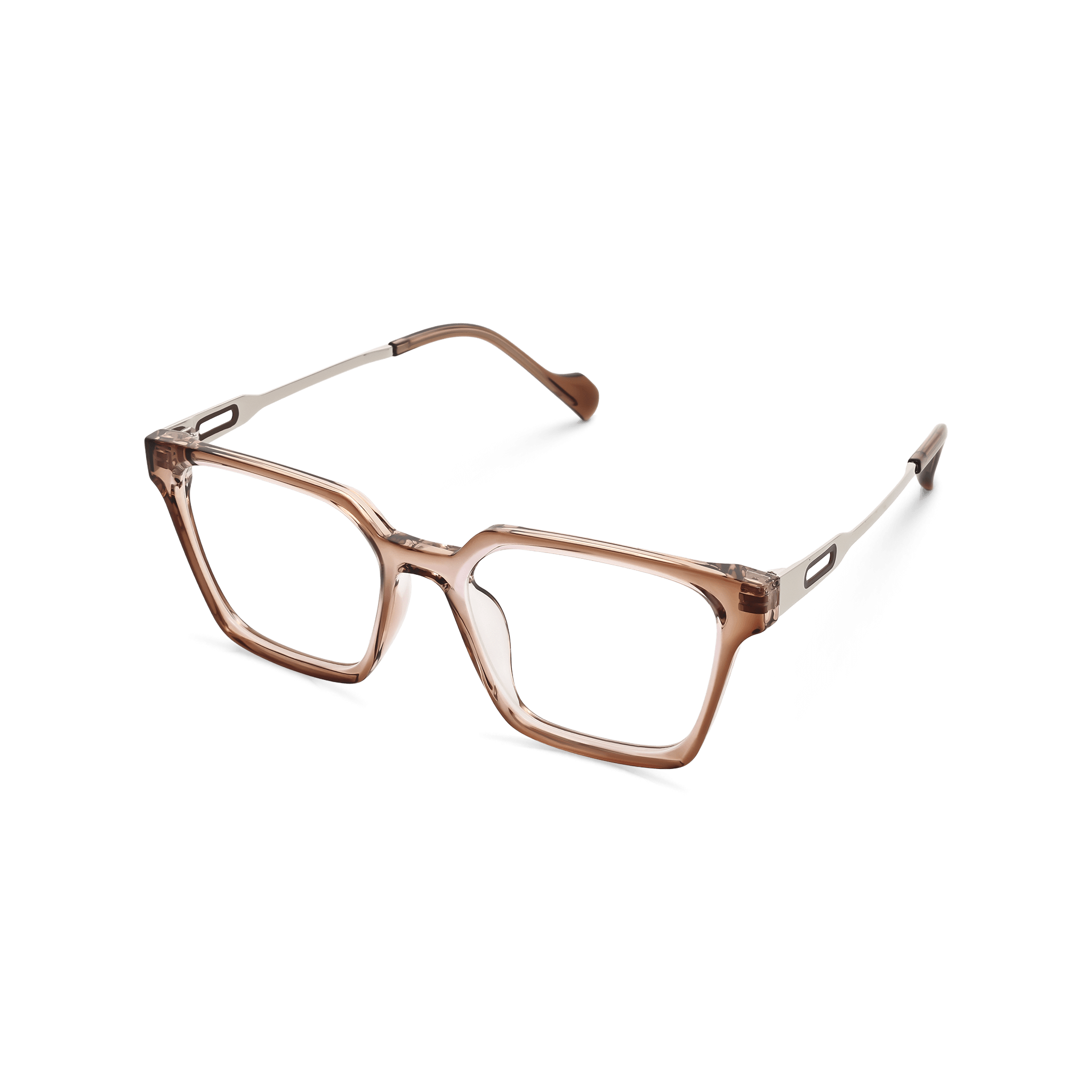 These eyeglasses are a harmonious blend of style and practicality. With a modern and minimalist design, they feature a gradient brown translucent plastic front frame and silver – toned metallic temples with rectangular cutout details. Suitable for vision correction, they can be used for nearsightedness, farsightedness, or reading, making them a great choice for daily wear.