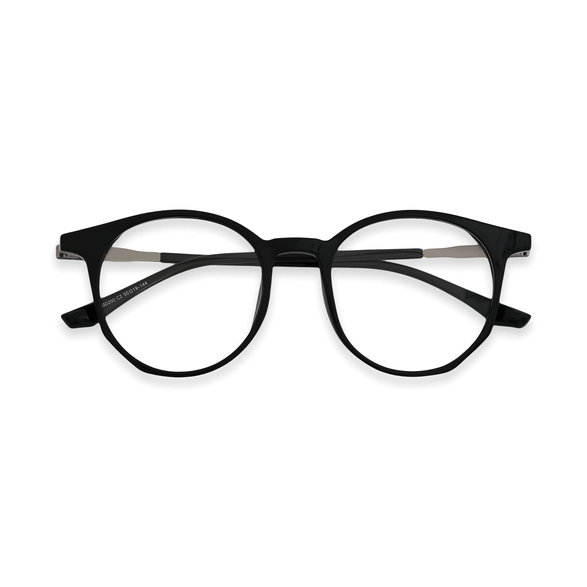 These eyeglasses are a modern and unisex accessory that strikes a perfect balance between style and functionality. The front of the frames, crafted from a glossy plastic or acetate, showcases a sleek black finish. The temple arms combine black plastic with a silver – toned metallic component, adding a contemporary touch. They are suitable for custom lens insertion, making them ideal for vision correction or as a fashion statement.